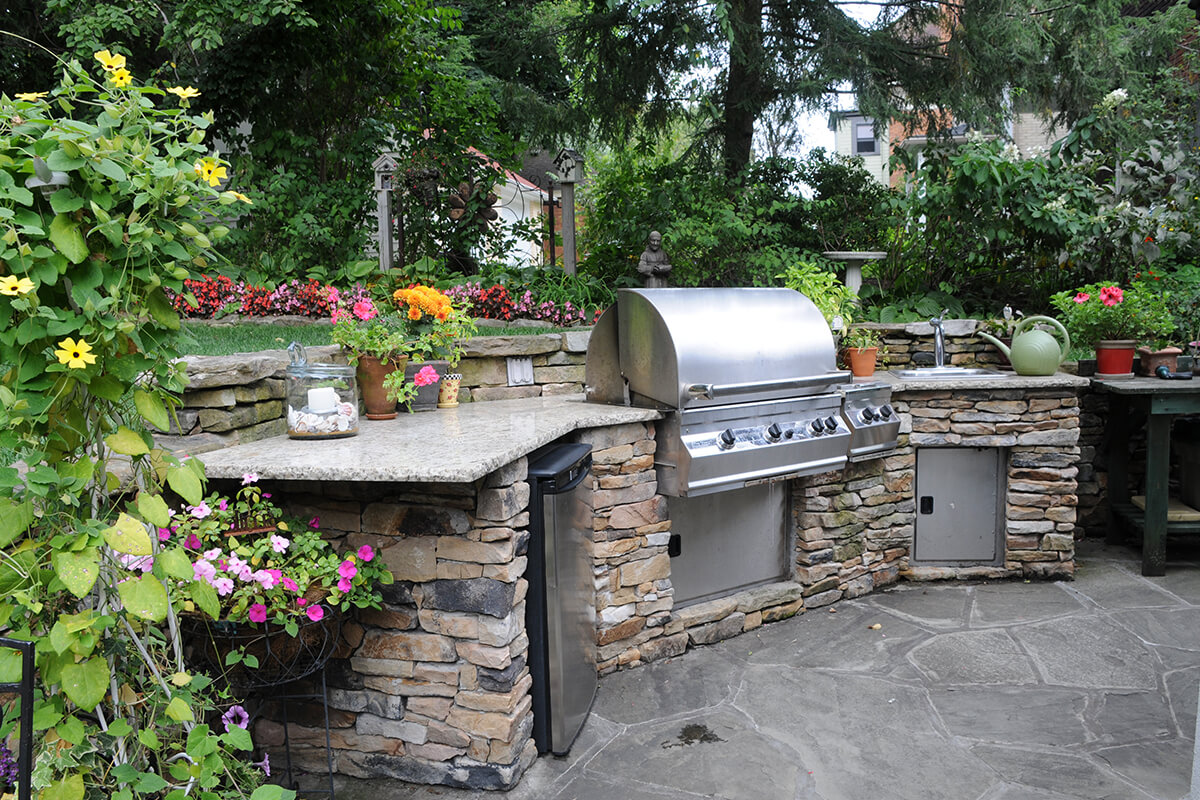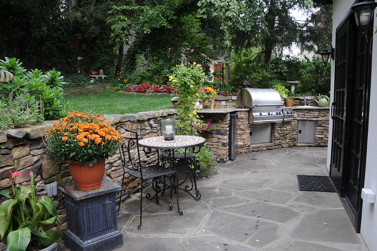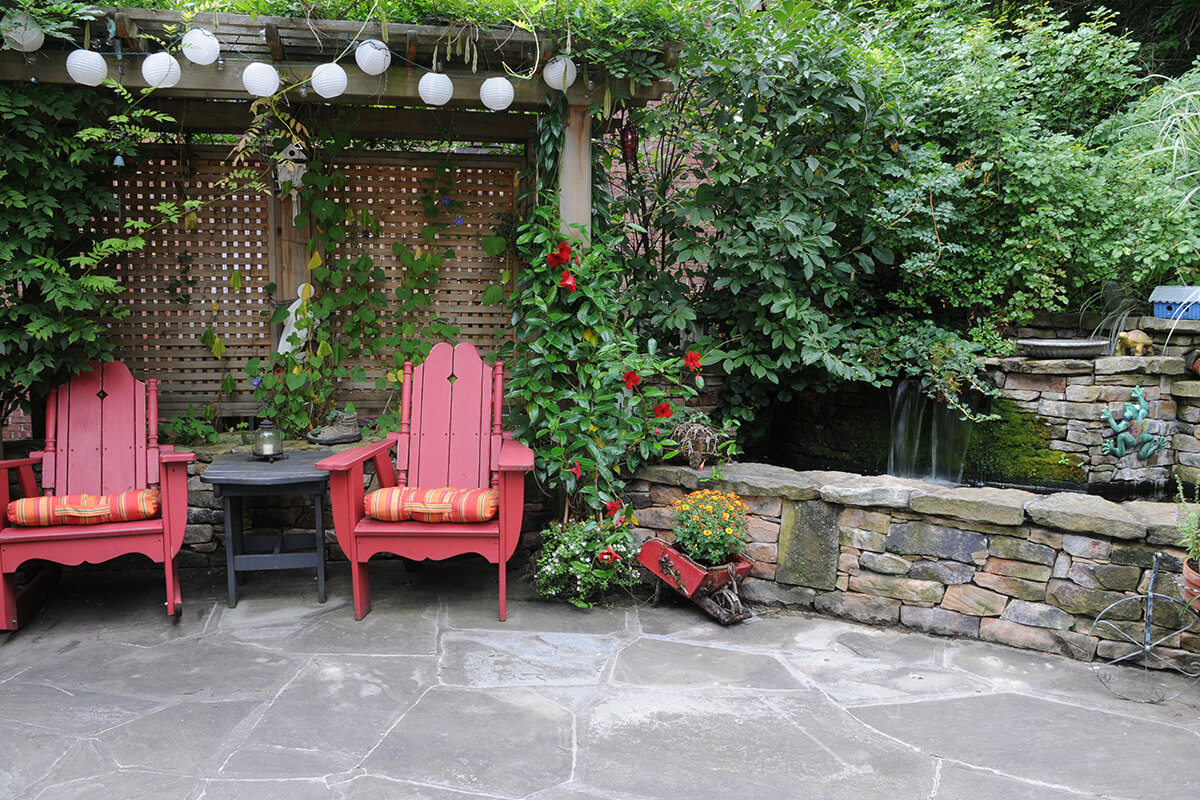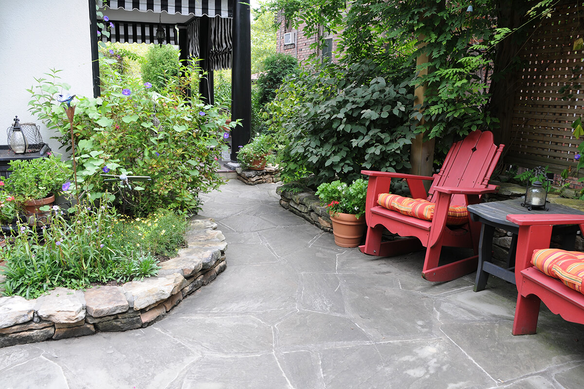 This small urban space was transformed into a charming and inviting garden. Key features of this project include a flagstone patio, a charming fireplace, and vibrant accents throughout. A koi pond and water feature create a relaxing ambiance, while the lush greenery and bright florals provide the perfect escape from the hustle and bustle of city life. City Escape is the perfect project to create your own retreat right in the heart of an urban landscape.