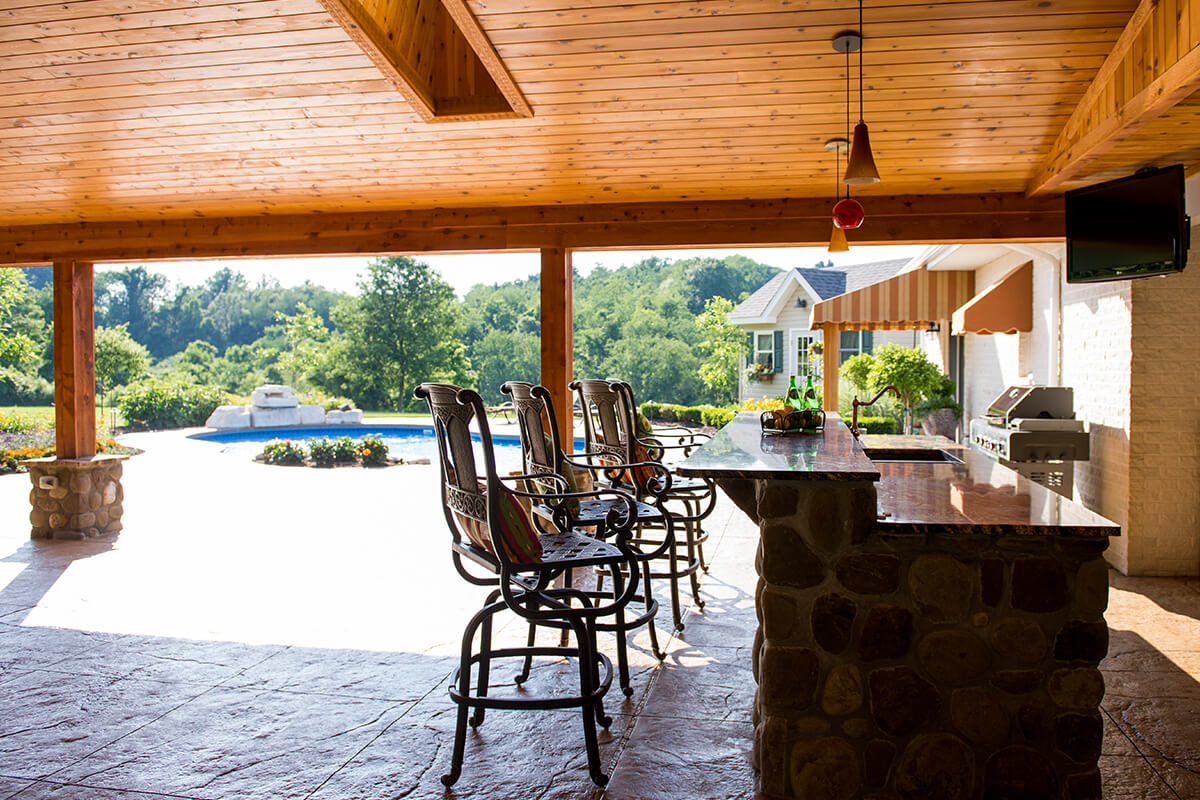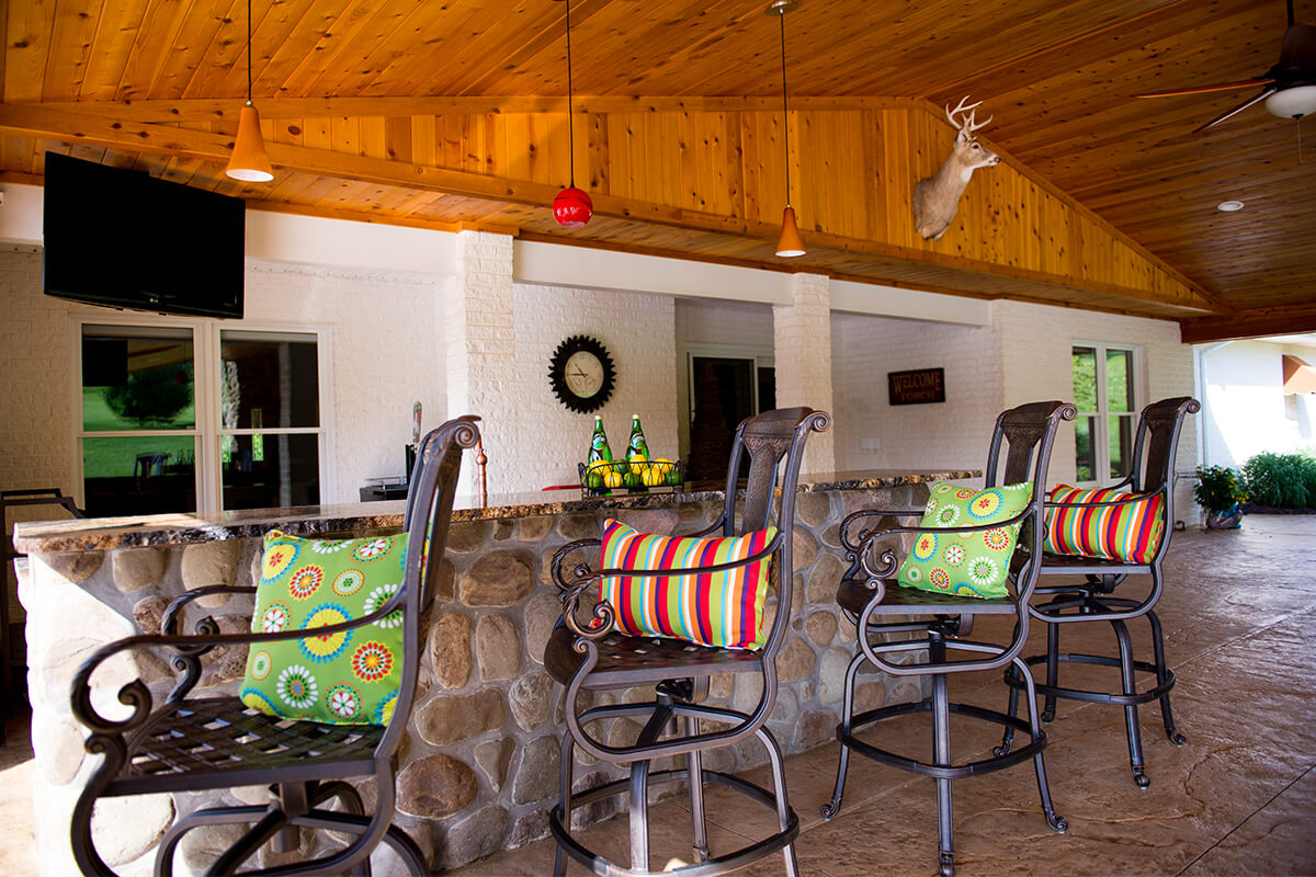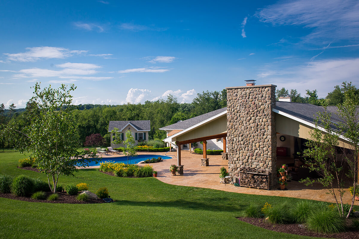 The centerpiece of this project is a large, inviting swimming pool. Surrounding the pool are spacious lounge areas and an overhead structure built off the main estate. This overhead structure houses a myriad of entertainment options, from a grand fireplace to a grilling station. Country Comforts is the ideal space for hosting unforgettable events and making endless summer memories.