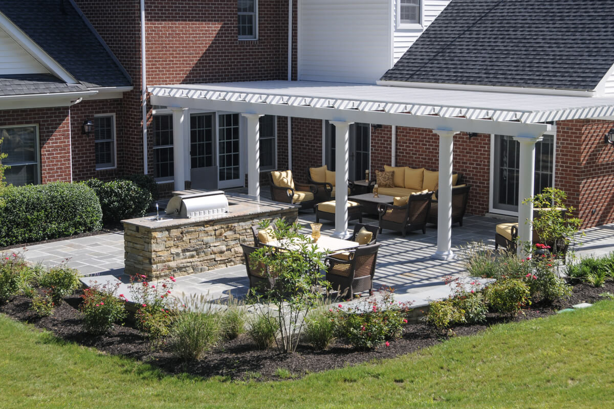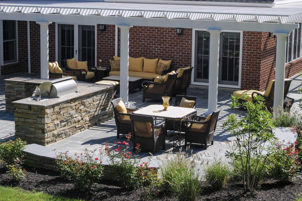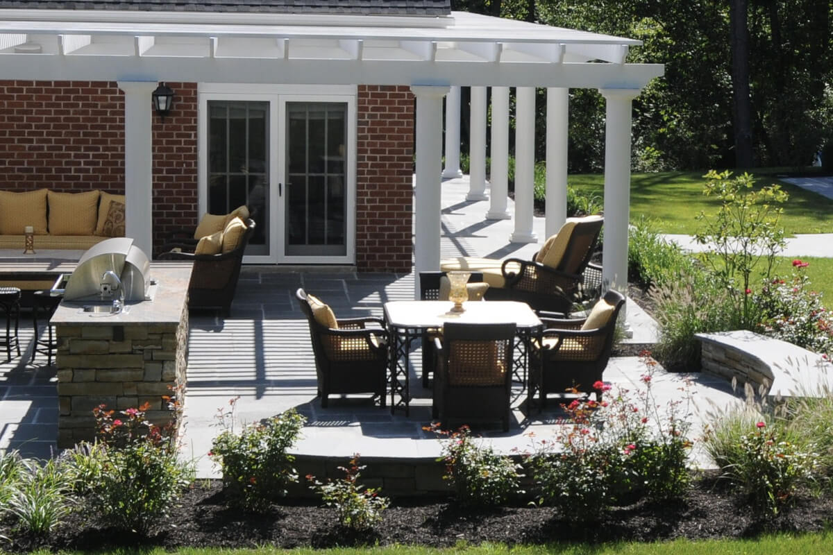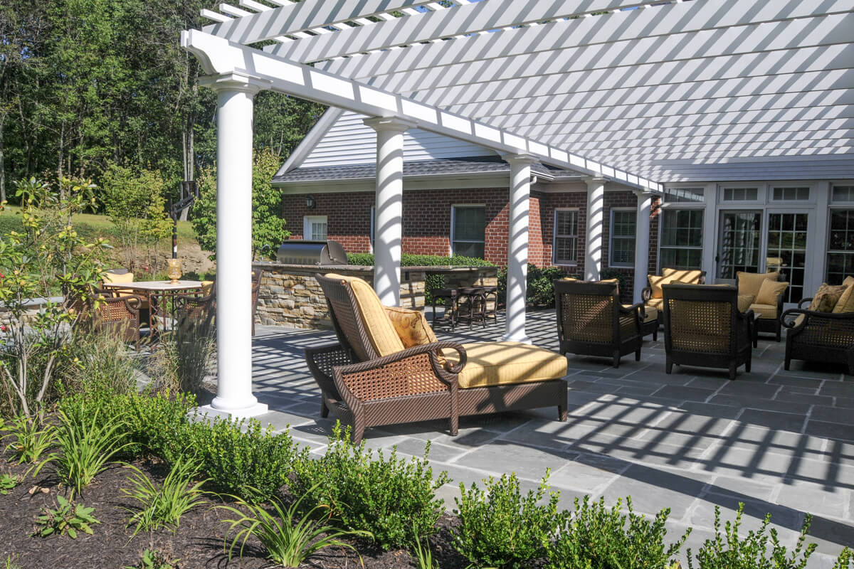 This project transforms an outdoor space into a charming and inviting living area. Key features of this project include a patio with a stylish overhead structure and a charming bar and grill area. The elegant space is completed with harmonious contrasts in the paving detail and lush vegetation. Living Lovely is a quaint garden balancing tranquility and elegance.