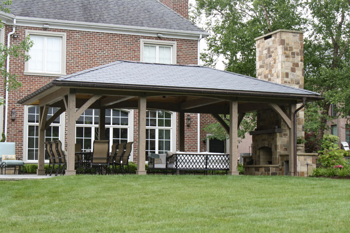 This project creates the ultimate outdoor living space, combining comfort, functionality, and style. A cozy fireplace provides warmth for chilly nights and an inviting ambiance. A fully equipped bar and grill area is perfect for entertaining guests indoors or outdoors, thanks to its thoughtful placement between the back door and the covered patio space. Ambient lighting enhances the space at night, creating an elegant atmosphere.