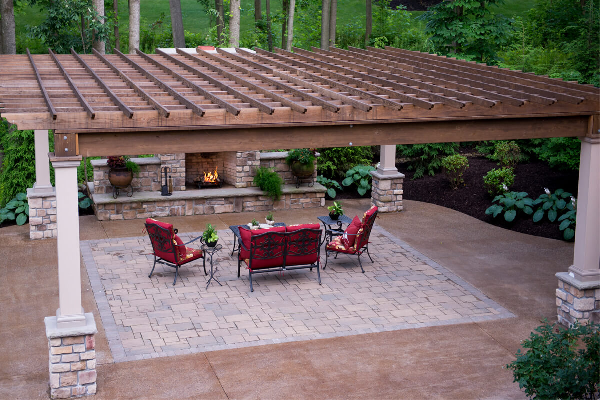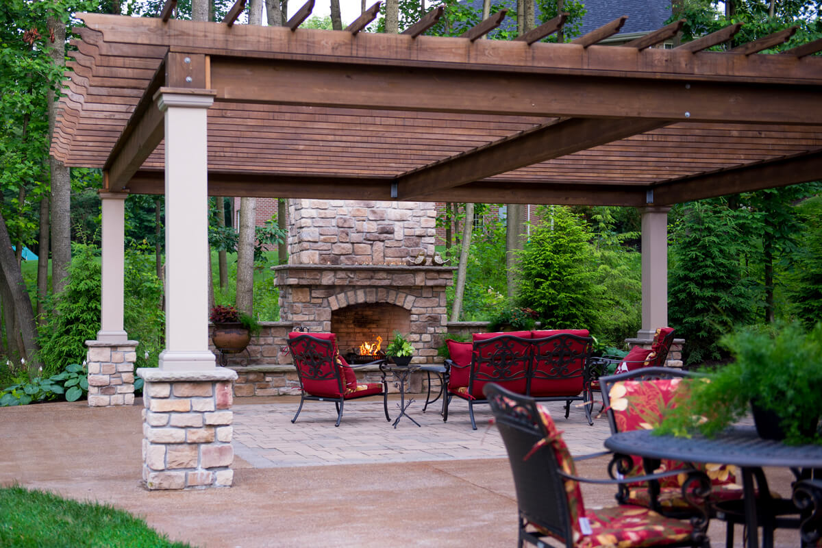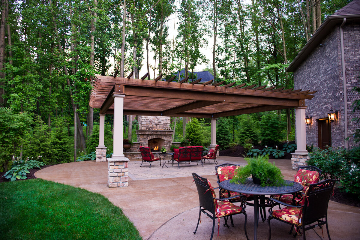 This project creates a serene woodland retreat, perfect for those who seek a connection with nature. Key features include a cozy seating area protected by lush foliage of trees. In front of the seating area is a natural stone fireplace that provides a peaceful ambiance. With its lush greenery and thoughtful layout, this retreat offers the perfect escape from the hustle and bustle of daily life—even the pups will enjoy it.